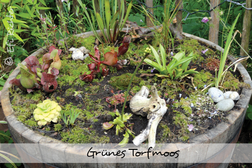 Unser Moorbeet wurde im Holzfass angelegt, man kann auch anderen wasserdichte Töpfe verwenden ...